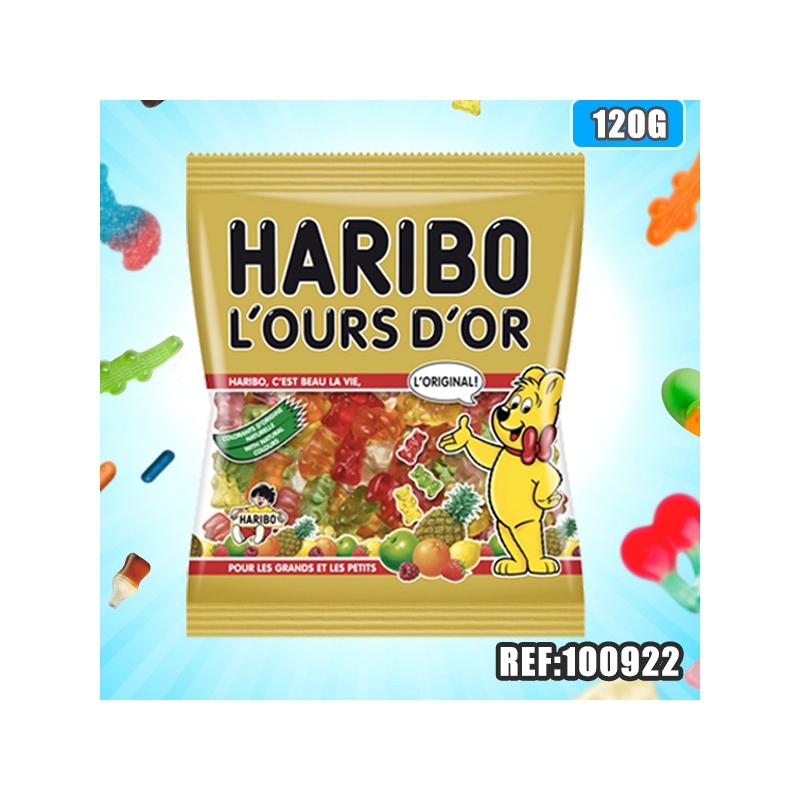 Ingrédients : Sirop de glucose, sucre, gélatine, dextrose, acidifiant, acide citrique, jus de fruits concentrés : pomme, orange, citron, fraise, framboise, ananas, arômes, concentrés de fruits et de plantes : carthame, spiruline, pomme, kiwi, orange, baie de sureau, citron, mangue, fruit de la passion, cassis, aronie, raisin, agents d'enrobage : cire d'abeille blanche et jaune, cire de carnauba. Tenir à l'abri de la chaleur et de l'humidité. Valeur nutritionnelle pour 100 g : 1459Kj/343Kcal, Matières grasses : 0.5g dont acides gras saturés 0.01g, glucides : 77g dont sucres : 46g, Protéïnes : 6.9g, Sel : 0.07g.