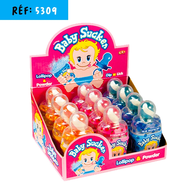 Ingrédients sucettes : sucre, sirop de glucose, arômes, colorants : E100. E120. E133. Ingrédients poudre acidulée : dextrose, acidifiants : acide citrique, acide malique, émulsifiant : E470b, colorants : E100, E120, E133. Valeurs nutritionnelles pour 100g : Energie : 1407.9kJ/336.08Kcal, matières grasses : 0g, dont acides gras saturés : 0g, glucides : 84.5g dont sucres : 68.4g, protéines : 0g, sel : 0g.